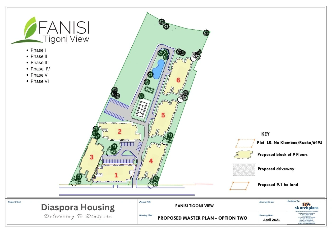 The master plan consists of four phases, to be developed phase by phase, promising a Diaspora estate with all amenities included, including a minimart and wellness centers.